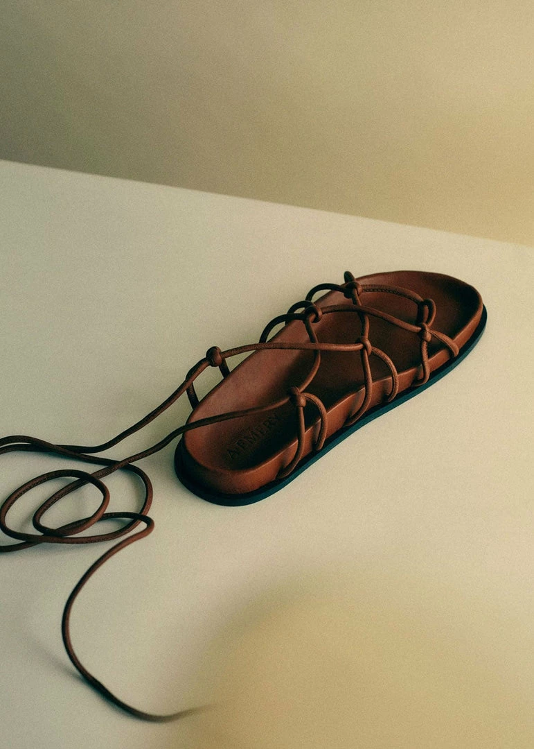 Criss-cross tubular straps for a subtle flip flop silhouette