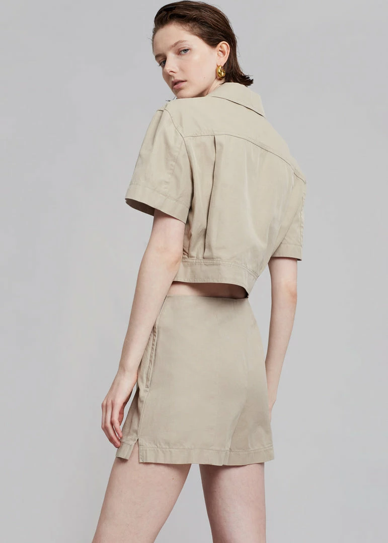 Shorts with skirt panel at front