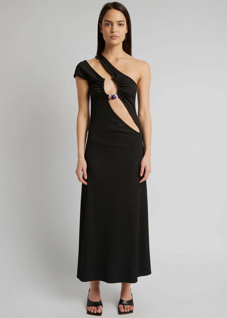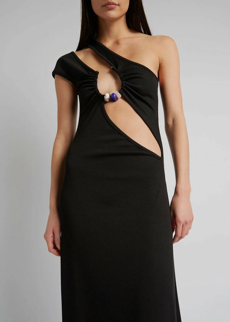 One shoulder cutout with a capped sleeve