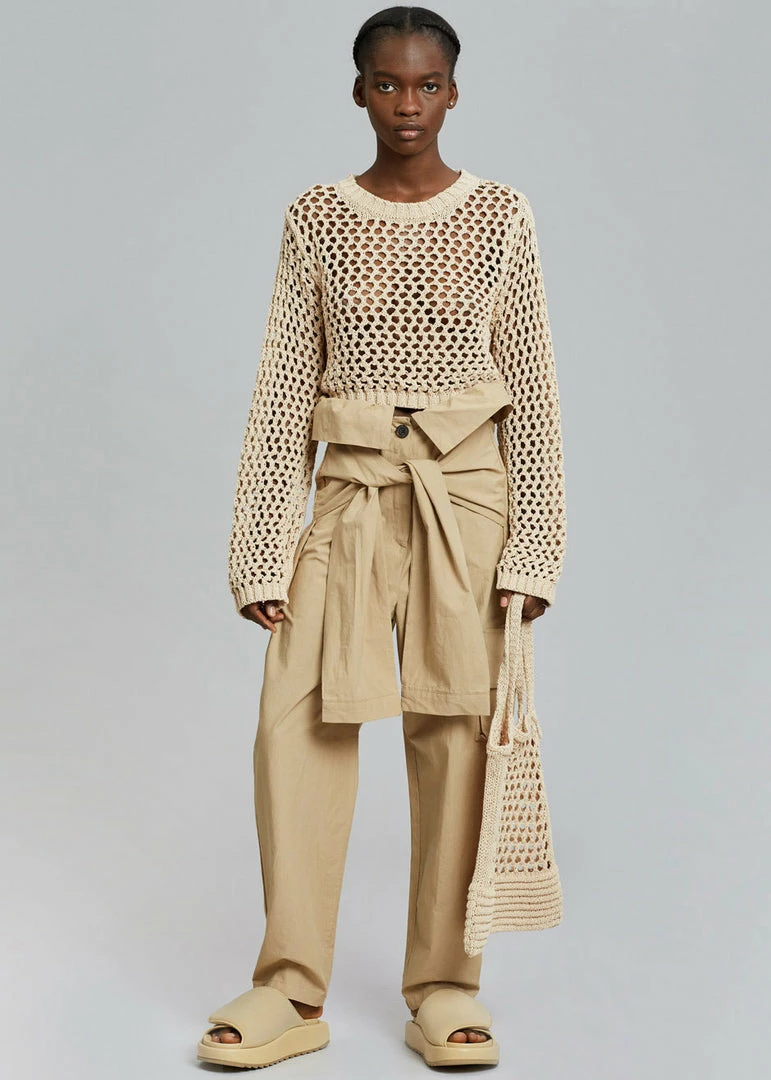High rise with self-tie shirt sleeve beltΒ